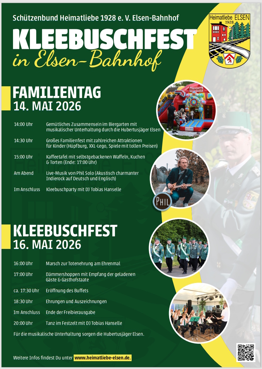 Am 14. und 16. Mai richtet die Heimatliebe ihr traditionelles Kleebuschfest und 2 Tage vorher den Familientag aus. Eine kleine Vorschau auf das Programm seht ihr auf unserem Plakat, was ...